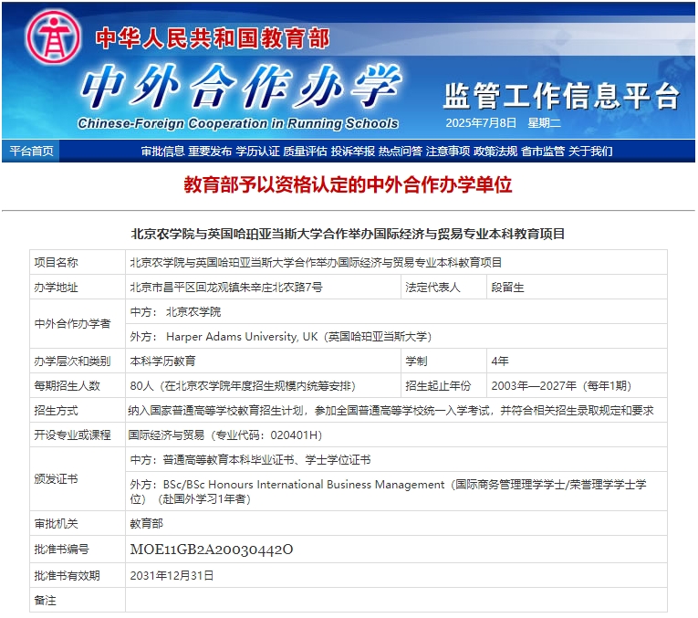 太阳成集团tyc122cc与英国哈珀亚当斯大学合作举办国际经济与贸易专业本科教育项目