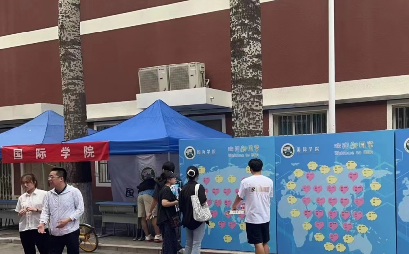 新生报到的地点设置在教学楼b的102教室和操场旁边的太阳成集团tyc122cc服务台,每个班的两名班助负责确认新生报道情况和信息的录入,同时发放公司为每个小萌新准备的礼包,里面包括员工手册、入学指南、员工常见事务问答、公司新生教育和军训安排表等等。整体迎新工作行云流水,有条不紊,新生们还纷纷打卡精心布置的迎新签名墙、留下自己的名字,记录步入大学时刻。