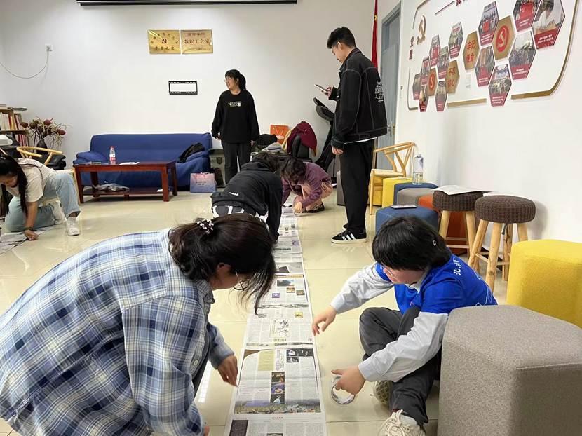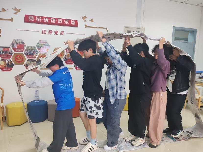 在“阳光伙伴”计划成员带领下,破冰游戏“大风吹”迅速吹走了陌生和距离。新生宿舍长们紧锣密鼓的分组进行了名为“无敌风火轮”的团队合作游戏。利用报纸和胶带,各组齐心协力制作了自己的“风火轮”,承载所有组员步调一致的迈向终点。在活动中,宿舍长们深刻体会到了沟通协作的重要性,也进一步增强了团队的凝聚力。