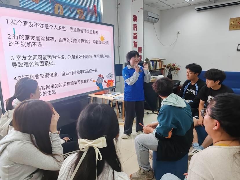 接下来的“宿舍问题解决之道”环节,各组围绕宿舍中常见的实际问题展开了热烈讨论。针对作息时间不一致、卫生问题及人际关系矛盾等案例,提出了相应的解决方案,并进行了分享交流。通过对实际案例的分析与讨论,宿舍长们不仅增强了对宿舍氛围营造的认识,更提升了解决宿舍问题的能力。