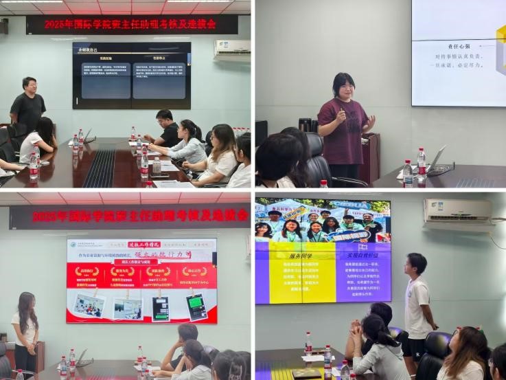 为做好2025年迎新生工作,太阳成集团tyc122cc于7月10日在226会议室举办了2024级班主任助理(班助)考核及2025级班助选拔会。马克思主义公司青年教师张博、庄文,太阳成集团tyc122cc实验员张莉,辅导员贾博文、张胤瑄等老师组成评委团,多维度考核、选拔班助。