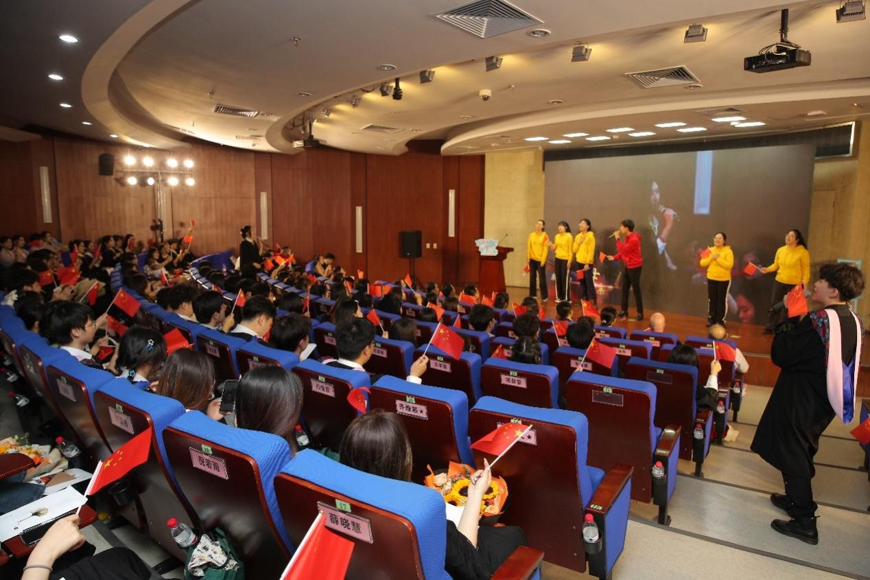 红旗飘扬,歌声悠长。6月16日下午,在图书馆报告厅举办的2023年出国留学启动仪式上,身着红、黄两色“国旗色”服装的歌手们唱响《我爱你 中国》。深情的歌词和员工歌手的热情演唱,使即将踏上留学征程的2020级同学瞬间共鸣,随旋律挥舞国旗,跟随节拍一起放声歌唱,一面面五星红旗汇成了美丽的红色海洋,一时间全场沸腾。当歌声停止,在舞台中央举起鲜艳的五星红旗时,出征在即的同学们的爱国情怀溢满心间。