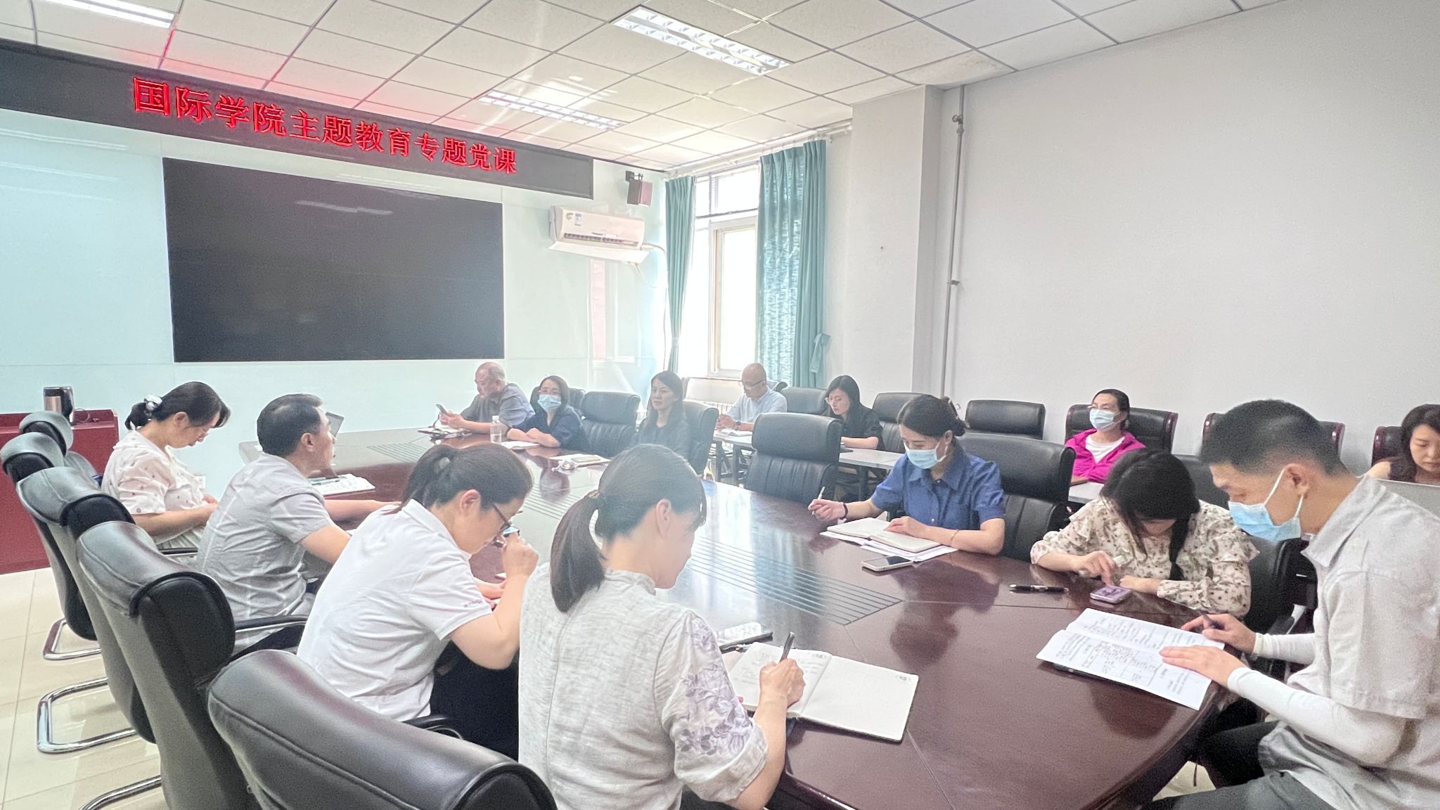 为深入开展学习贯彻习近平新时代中国特色社会主义思想主题教育,2023年6月14日,国际公司党总支书记杨宝东以《深入学习贯彻习近平新时代中国特色社会主义思想,促推新时代国际合作与交流高质量发展》为题讲授主题教育专题党课。公司党总支委员、全体教职工及员工党员代表参加学习。