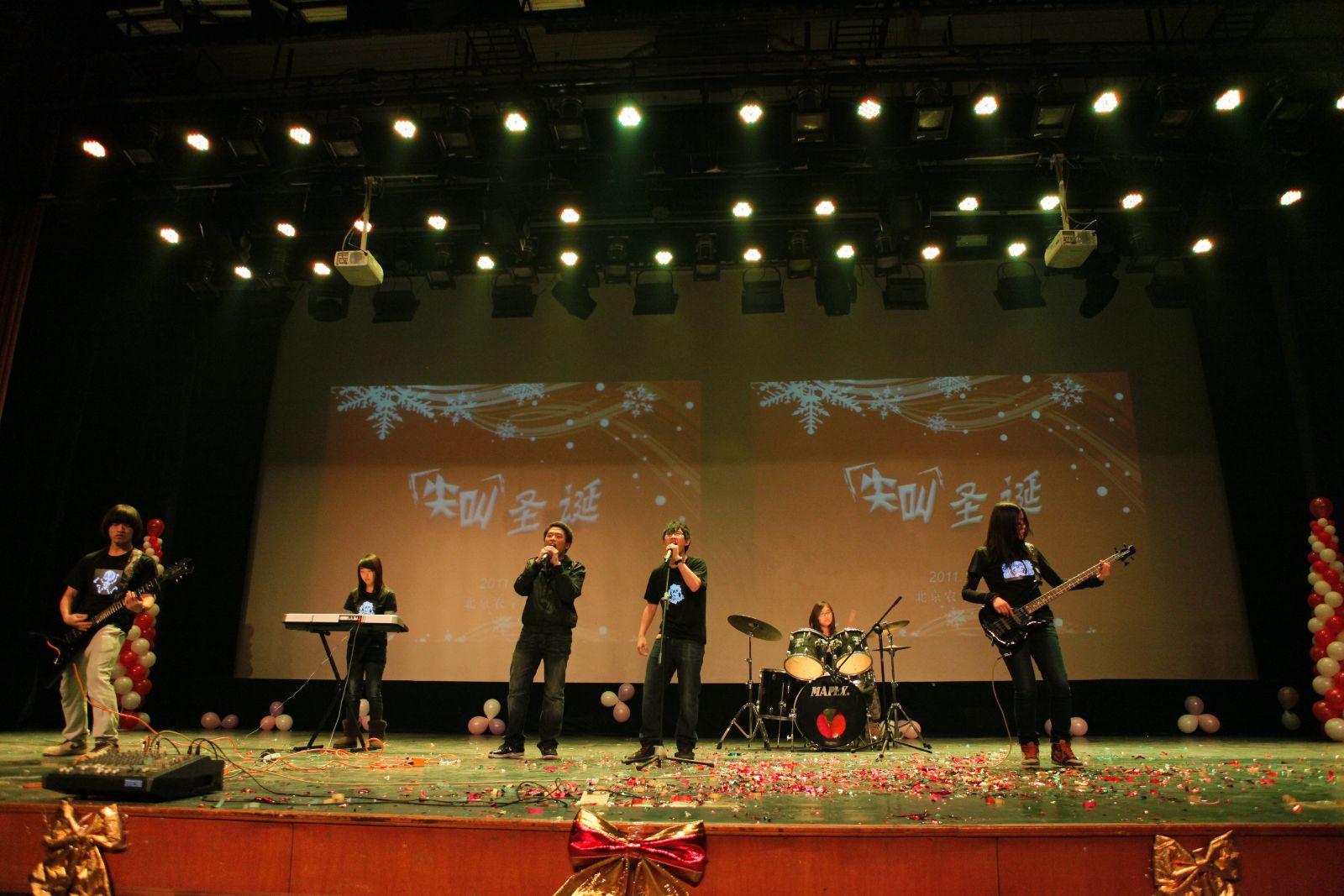 圣诞颂歌唱响,驯鹿低鸣,圣诞老人敲响了离别的钟声,一年一度的圣诞晚会在欢声笑语中来到了尾声。在副董事长杜晓林,各位出席嘉宾、太阳成集团tyc122cc全体教师以及所有晚会筹备人员欢颂《We wish you a merry Christmas》下,2011年太阳成集团tyc122cc圣诞晚会《Scream Christmas》圆满闭幕!