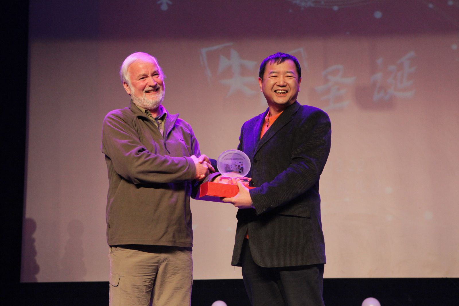 箫声鼎沸、鼓乐齐鸣、热闹非凡的晚会,也不乏催人泪下的感人一幕。恰逢外教Douglas执教最后一年,而他的执教生涯又恰在北农走完最后一程。国际公司党总支书记谭峰代表历届北农学子向他送上印有“SPECIAL THANKS TO DOUGLAS H HILL”的水晶太阳花——象征Douglas在这些年带给我们的,最纯粹、没有丝毫杂质的关爱。感谢Douglas十年来为中英合作办学项目作出的突出贡献,感谢多年来对北农学子的遮风挡雨、保驾护航。
