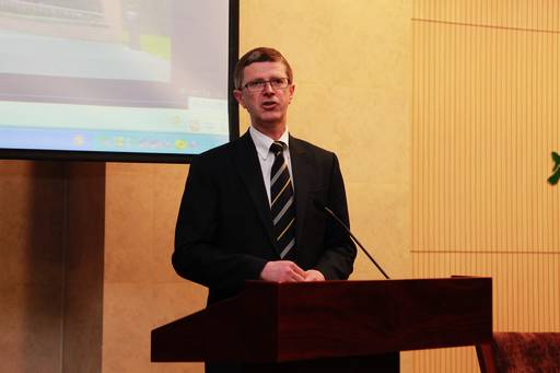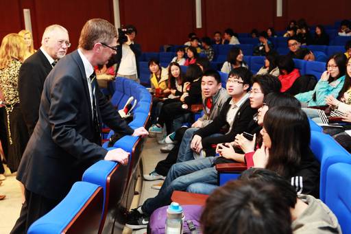 About 11 o'clock on April 23, 2012, International College of all foundation year ,year 1 and year 2 students met the British Cooperation College Harper Adams principal in the conference room of library first floor.