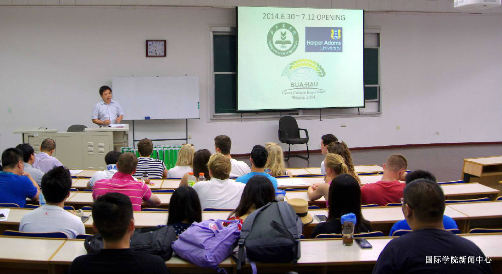 30th June,2014, in order to welcome the exchange students from Harper Adams university, ICBUA held a welcome ceremony, the Dean Zhang Zhiyong, the vice Dean Dong Lei and some teachers joined this ceremony.