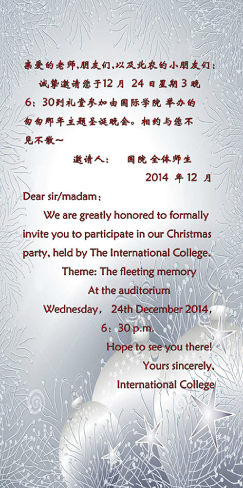 国际学院圣诞晚会邀请函
