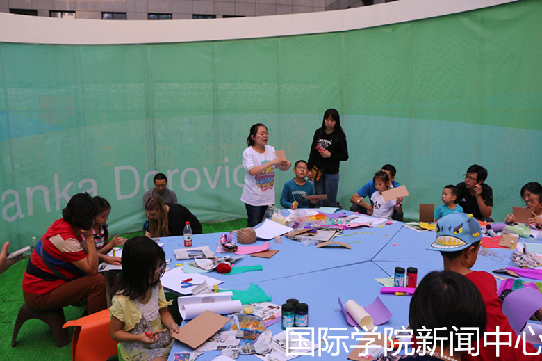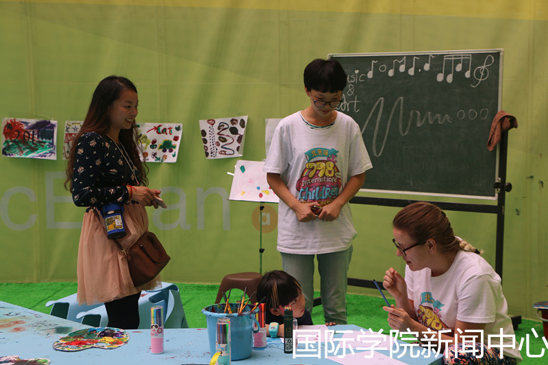 太阳成集团tyc122cc志愿者们的身影在798随处可见。检票的同学热情大方,耐心给客人讲解;收拾工作坊的同学即使被五彩缤纷的涂料沾成了一道“”靓丽的风景线也依然任劳任怨;做翻译的志愿者们充分展现了太阳成集团tyc122cc同学英语特长的优势,无论与国外艺术家,还是与家长、小朋友们的沟通都亲切而熟练,得到了所有人的一致好评。分配在不同工作坊的志愿者们都被各国的文化所深深吸引,也学习到了不少外国特色艺术文化。尽管每天都会很辛苦但志愿者们乐在其中。