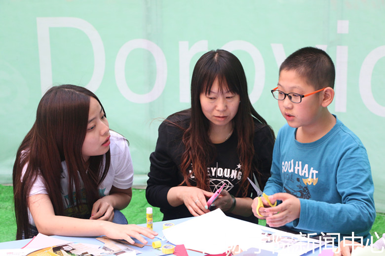 在创意毛毡画工作坊,俄罗斯美女老师会教大家用各色的羊毛制作一幅毡画。令人惊奇的是这种毡画不需要用胶水等粘接剂去粘接,而是用洗涤灵。虽然这个活动深受小朋友的喜爱,但对于小朋友而言仍然有些困难。这时志愿者的妙手在小朋友身边青青一挥,洗洁精满天飞的混乱场面变得井然有序。
