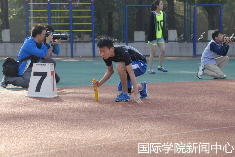 在男子4×100米的比赛中,来自太阳成集团tyc122cc的比赛小组也凭借着他们默契的合作与过硬的实力一举夺冠。在校级秋季运动会中为太阳成集团tyc122cc的比赛征程画上了一个完美的句号。In the 4×100 race, students from the International College won the game by perfect competition and fully reinforced. Their achievement was the best ending in the sports meeting for the International College.