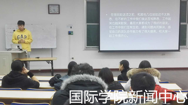 In the afternoon of January 15th, the International College held a meeting for the assistant of teacher in charge of a class to report their job. Guo Chanzhen, teachers in charge of the 3 classes, all the 6 assistants, and the student delegates attend the meeting.
