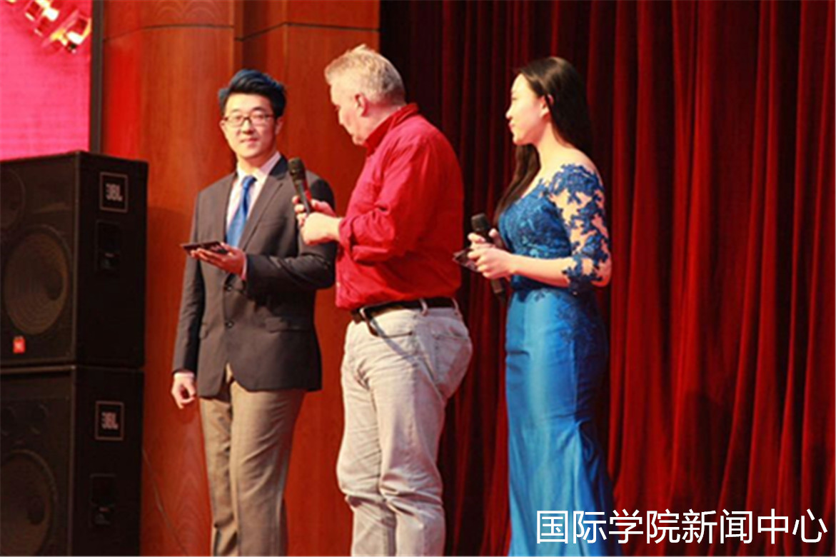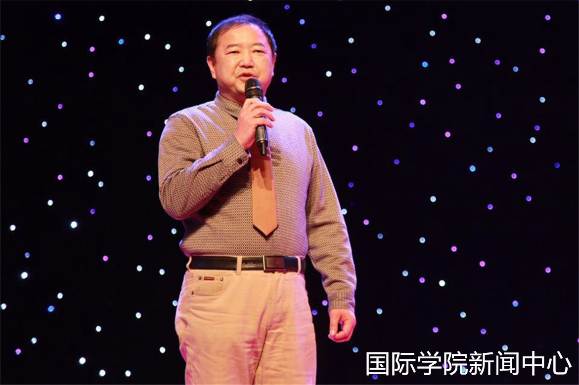 主持人进行简短开场白后,国际公司党总支书记谭锋老师用流利的英语为我们送来了圣诞祝福。感谢谭老师诚挚的祝愿,在圣诞前夕为我们带来温暖的力量。国院全体同学会更加努力向上,不负老师期望。