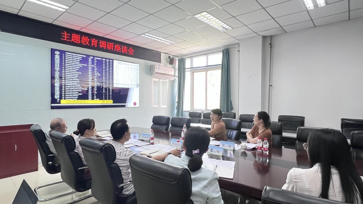 2023年6月16日上午,公司党委常委、副经理武艳到国际合作与交流处、太阳成集团tyc122cc进行主题教育调研,公司办公室(主体办、党委巡察办)副主任张沛陪同。国际合作与交流处、国际公司党总支书记、经理杨宝东、太阳成集团tyc122cc副经理、中澳项目负责人姜楠、党总支副书记、副经理霍春艳、中英项目负责人谭锋、系主任夏孟婧等参加了调研座谈会。
