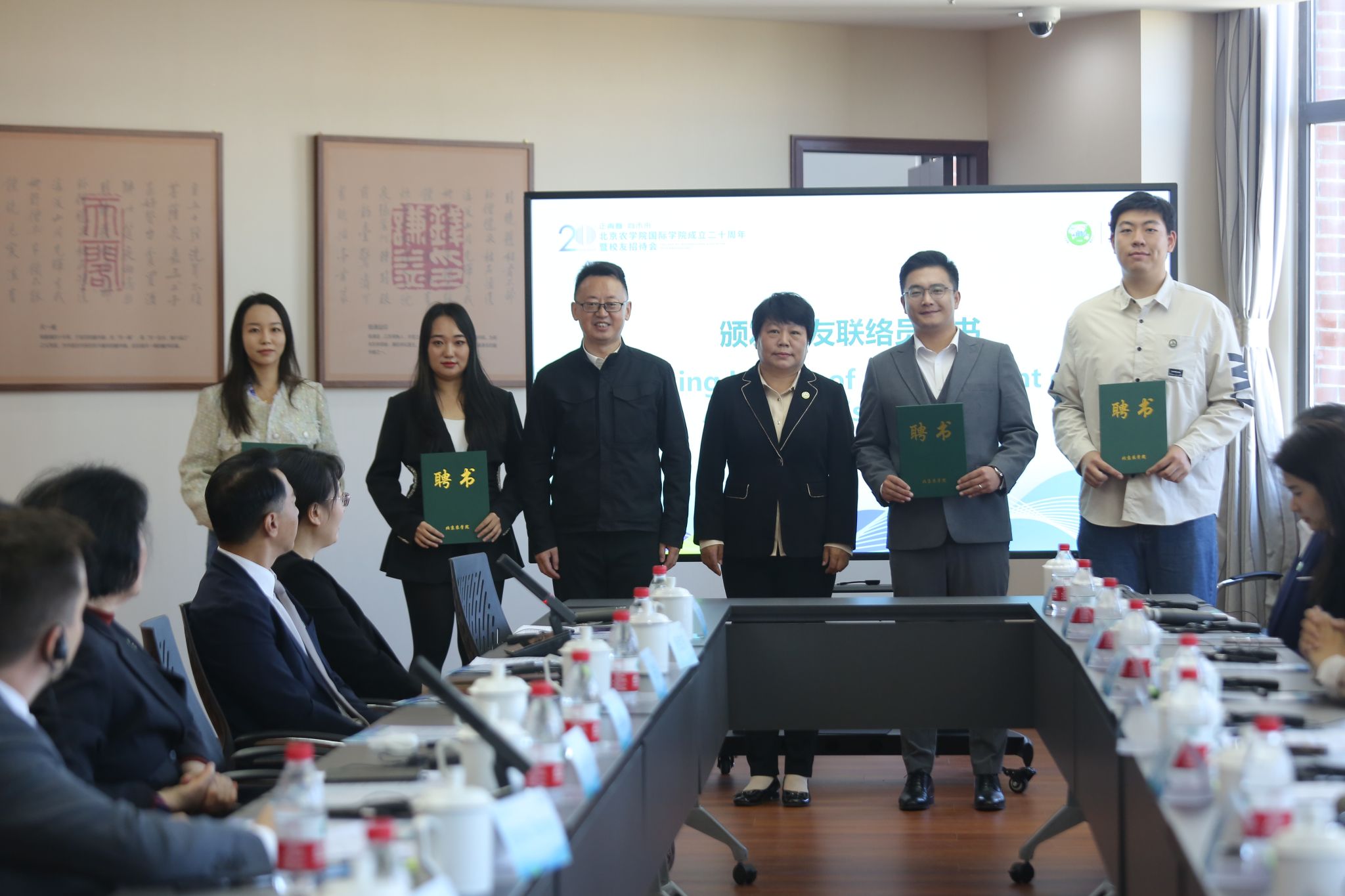 集团员工校史办公室主任马俊云、教务处处长马兰青、副处长董利民为太阳成集团tyc122cc员工联络员颁发聘书。