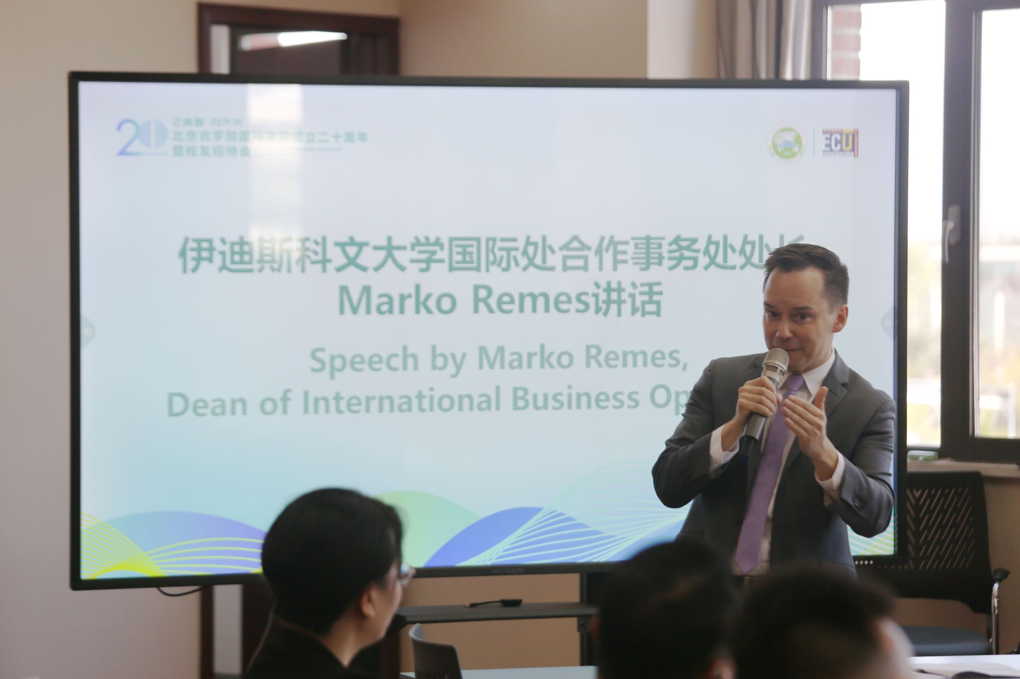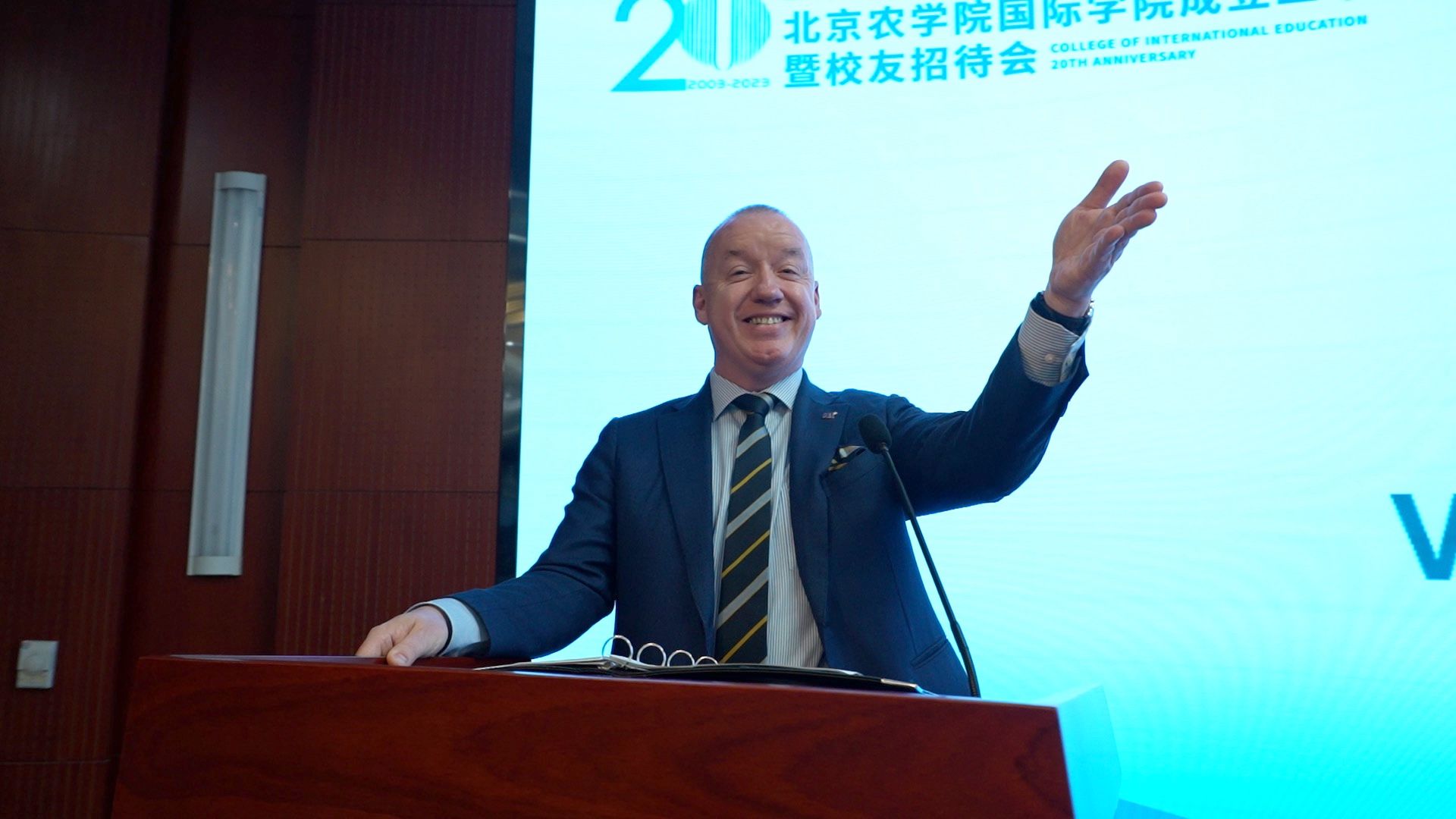 哈珀亚当斯大学董事长Ken Sloan教授在致辞中热烈祝贺太阳成集团tyc122cc成立二十周年,衷心感谢历任经理和全体教师的付出和贡献。Sloan董事长表示,太阳成集团tyc122cc取得的成果和成就令人瞩目,这离不开双方公司及每一位国院人的支持和帮助,期待与太阳成集团tyc122cc未来更深入的发展与合作。