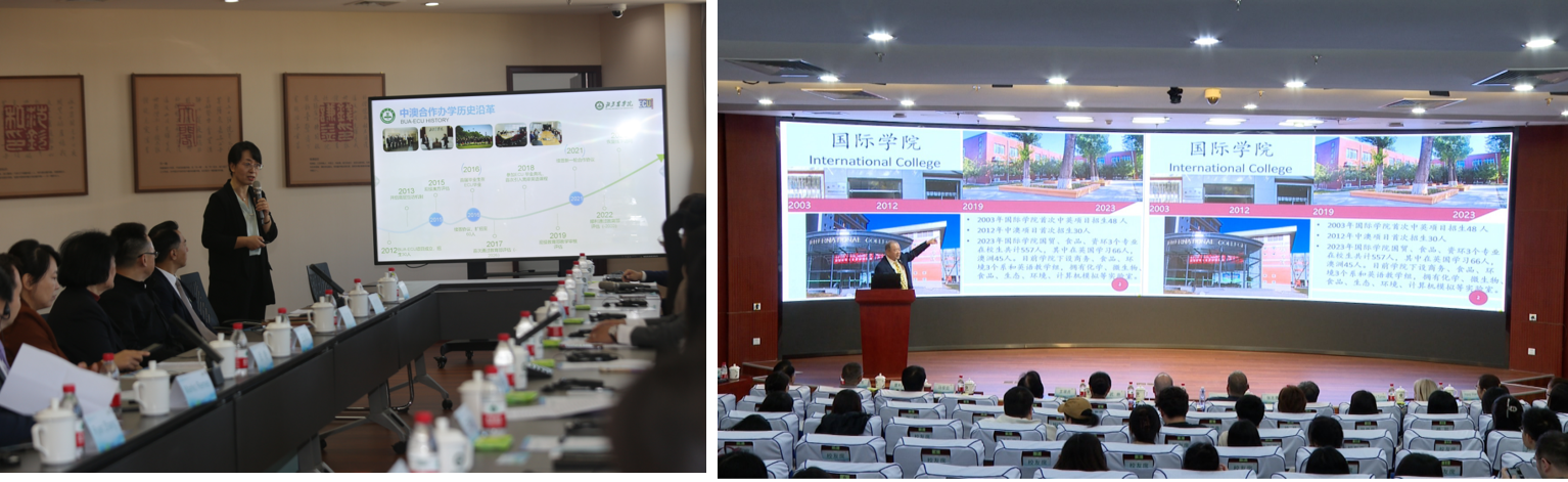 太阳成集团tyc122cc副经理、中澳项目负责人姜楠、中英项目负责人谭峰分别介绍了中澳合作办学项目和中英合作办学项目的办学发展历程、高光时刻及取得的成就。