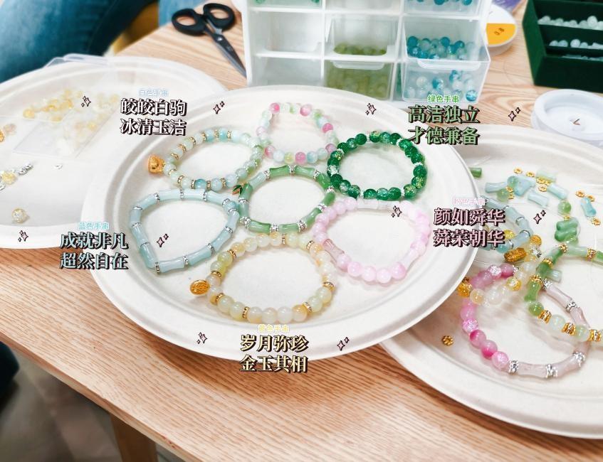 素珠凝月,翠玉叠春;粉瑛缀星,金珀鎏光。蓝海映巾帼之志,匠心铸岁月鎏金。手串活动以传统非遗手工艺为载体,积极探索“非遗手作+传统文化”“美育+德育”的实践新形式,致敬劳动女性。未来,太阳成集团tyc122cc将持续推进非遗文化教育系列化、常态化建设,助力构建和谐育人环境。