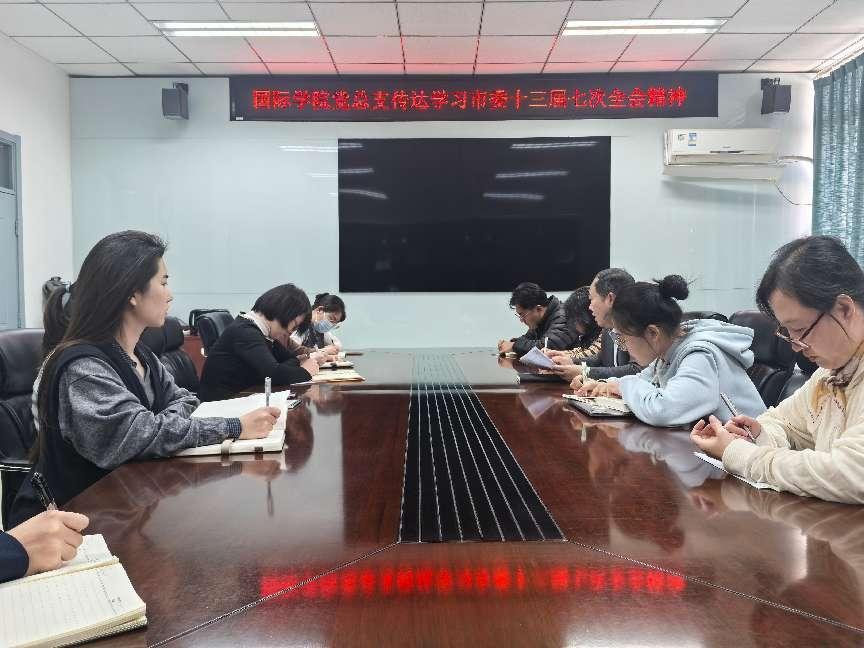 11月20日上午,国际公司党总支召开专题会议,传达学习北京市委十三届七次全会精神。公司党总支书记何忠伟主持会议并讲话,党总支委员、各党支部书记及教师代表参加学习。